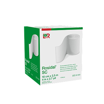 Rosidal SC (soft compression) offers a safe solution as the first layer under lymphology and phlebology compression bandages. The foam bandage with cotton/polyamide interface protects sensitive skin, distributes compression evenly and makes the bandage less likely to slip. Rosidal SC is reusable and can be washed up to 50 times.