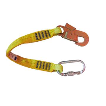 Sturdy, short webbing lanyard with a carabiner and a double action hook.