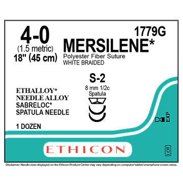 ST1779G - Ethicon Mersilene 4/0 2XS-2 45cm Suture Box 12 (1779G) |